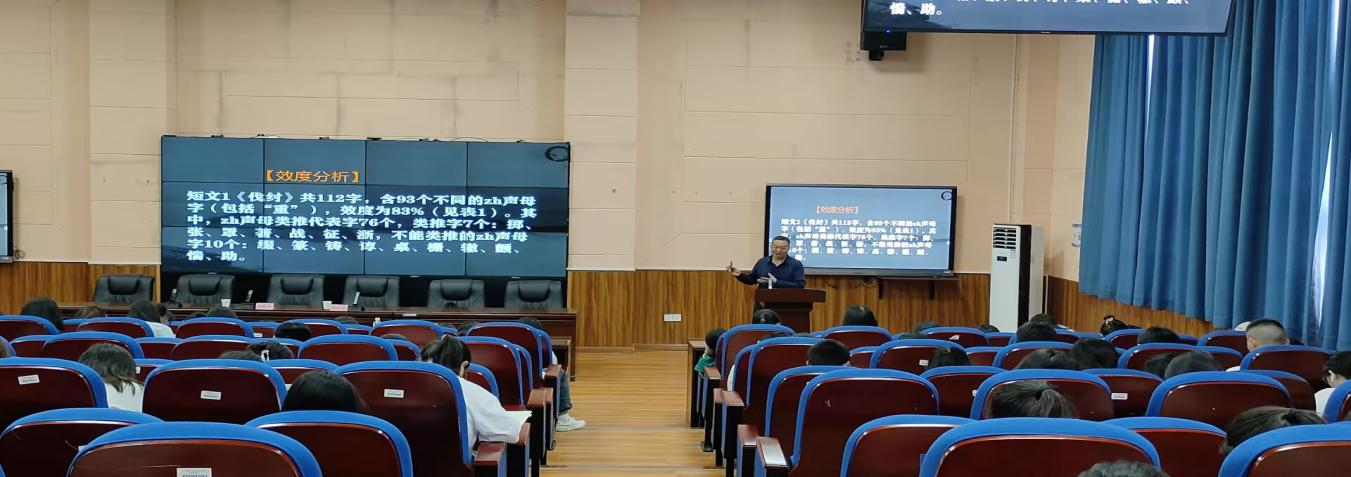 周华银是永利yl23411集团官网入口副教授,先后担任永利yl23411集团官网入口原教科所负责人、教研处(教研中心)负责人及教学督导室副主任、教研处副处长等职务,长期致力于职业教育与汉语言文学教育研究。本次讲座周华银分别围绕平翘舌音混淆的原因及传统教学方法的不足、平翘舌音字集中识记短文的编写原则、韵文识记翘舌音字的应用实践三个方面,进行了深入浅出的理论讲解和互动练习,周华银还示范了他独创的韵文套用民歌练习方法,通过歌曲有趣、高效地练习普通话平翘舌音。