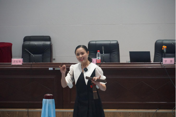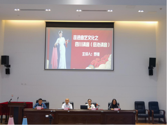 为深入了解四川清音,更好地传承这项非物质文化遗产,4月2日下午,永利yl23411集团与红色文化研究中心邀请到了四川省非遗项目“岳池清音”传承人罗捷老师来院授课,带领大家领略四川清音的艺术魅力。讲座由公司党总支书记彭松林主持,岳池县文化馆非遗部主任王玲、永利yl23411集团经理冉嘉洛、音乐教研室全体教师、音乐专业及学前专业近200名员工参加了本次讲座。