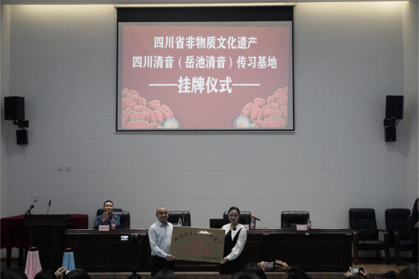 讲座开始前,永利yl23411集团还举行了省级非遗项目—四川清音(岳池清音)传习基地的揭牌暨指导老师聘书颁发仪式。