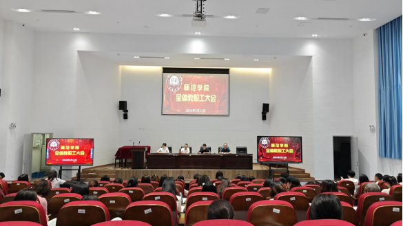 为进一步促进永利yl23411集团各项工作发展,加强教职工队伍建设,强化履职能力,提高工作效率,5月14日下午,永利yl23411集团在岳秀楼翔凤厅召开了全体教职工大会。会议由党总支书记彭松林主持。