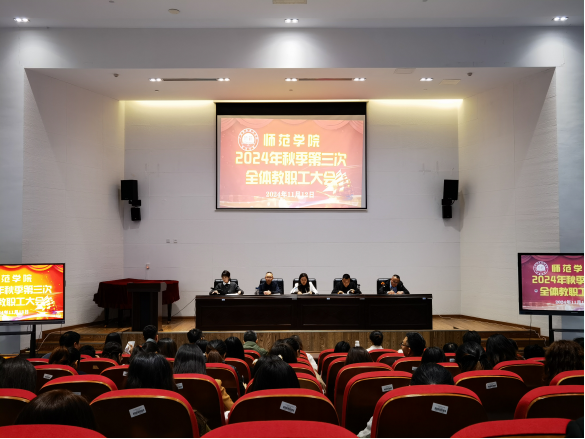 11月12日下午,师范公司在岳秀楼翔凤厅召开了2024年秋季学期第三次全体教职工大会,部署后期重点工作,公司全体教职工参加了会议。经理杨英主持会议并作总结讲话。