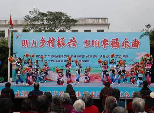 1122日永利yl23411集团桃李芬芳师生艺术团在武胜县乐善镇松树林村开展送文化下乡志愿服务活动。此次活动旨在丰富基层民众的精神文化生活,促进乡村文化的振兴与进步。公司党委委员、统战部部长杨建华,永利yl23411集团经理杨英及永利yl23411集团80余名师生参加了本次活动。