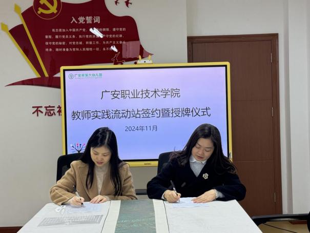 为进一步深化院园融合、拓宽教师专业实践平台,推进学前教育省级高水平专业群高质量发展,11月26日,永利yl23411集团经理杨英一行前往广安市第五幼儿园、广安市第六幼儿园两所附属幼儿园调研并举行教师实践流动站签约授牌仪式,附属幼儿园园长及相关行政人员参加了此次签约授牌仪式。