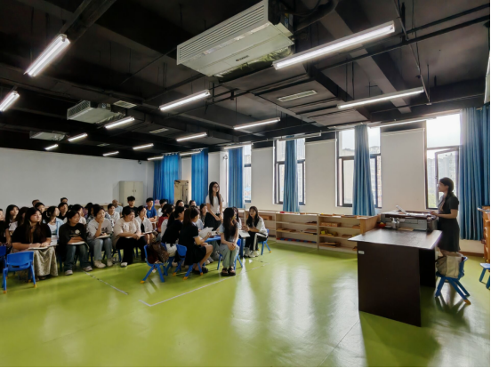 冉嘉洛在岳秀楼503蒙台梭利实训室听取了永利yl23411集团新入职教师余露讲授的《蒙台梭利教育》课程,课后与老师们围坐交流:肯定余老师备课充分,节奏得当,建议进一步用思政“点睛”,强化对员工的思想引导与价值塑造。