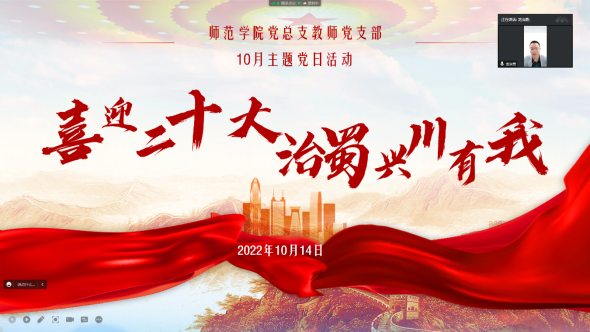 为深入贯彻习近平总书记来川视察重要讲话精神,落实中省市委和公司党委要求,按照“政治引领、标准提升、基础规范”的工作思路,公司党总支于2022年10月14日举行了“喜迎二十大·治蜀兴川有我”主题党日活动,全体教师党员参加了本次活动,本次主题党日活动通过线上进行。