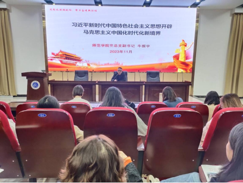 为深入学习贯彻党的二十大精神,学思践悟习近平新时代中国特色社会主义思想,11月7日下午,公司党总支副书记牛振宇在明德楼希贤厅以“习近平新时代中国特色社会主义思想开辟马克思主义中国化时代化新境界”为题给支部党员上了一堂专题党课。