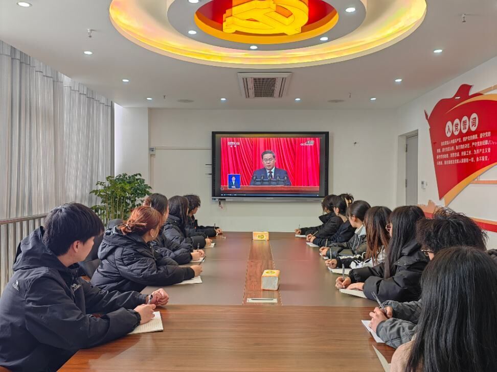 春和景明万物生,惠风和畅好时节。3月5日上午9时,第十四届全国人民代表大会第二次会议在北京人民大会堂隆重开幕。为深入学习领会习近平新时代中国特色社会主义思想和党的二十大精神,引导师生关注国情民生、了解时政热点、涵养家国情怀、强化使命担当,公司组织青年教师和团学联干部代表集中观看了开幕式盛况。