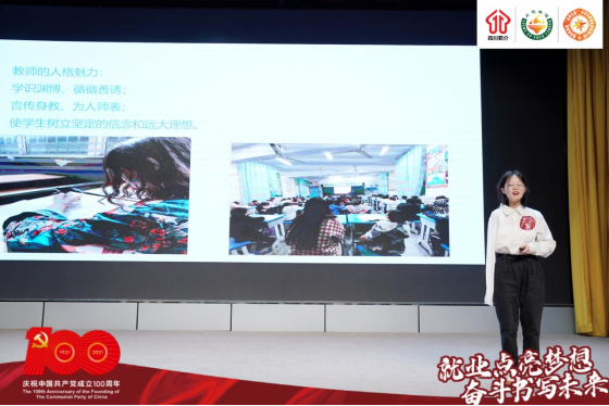 公司永利yl23411集团语文教育王彬同学台风稳健,讲述生动,乐观向上。她将立志成为一名人民教师,以身作榜样,去滋养更多青少年,从自我认知、职业认知、未来规划等方面做了详细讲解,获得众多企业举牌以及就业专家好评。