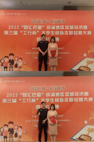 两轮考核后,李相君综合成绩名列第一,荣获“智汇巴蜀”成渝地区经济圈第三届“工行杯”老员工模拟求职招聘大赛四川片区赛一等奖。