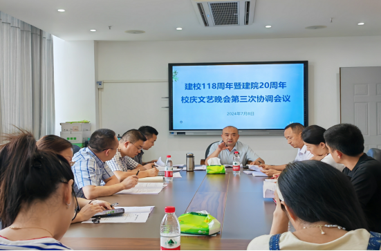 就如何高质量完成此次文艺汇演工作,冉嘉洛副董事长提出四点要求:一是各节目分导演要提高政治站位,高度重视,紧紧围绕20周年校庆主题,营造校庆的浓厚氛围。二是加强分工与协作,差人员团委进行全校选拔,服装道具可调用全校各部门内现有资源。三是强化责任意识,保质保量拿出高质量的节目,充分展示各节目特色。四是统筹谋划到位,主屏设计和人员名单抓紧落实到位,高标准逐项完成各项工作。