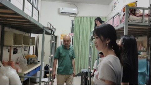 公司领导与老师们逐一走进新生宿舍与同学们进行了亲切的交流,从家乡特色到入学初体验,从对未来的规划愿景到眼下的生活点滴,从电线的规范使用到防火防盗的意识,展现出深切与细致的关怀。针对近期高温天气,提醒同学们要注意防暑防晒,遵守宿舍管理规定,避免出现安全问题,养成良好的卫生和生活习惯。同时鼓励同学们入校要尽快调整状态,适应新环境和新身份,珍惜学习时光,练就过硬本领,在新时代的舞台上砥砺奋进。