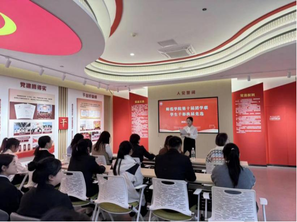 为加强员工干部队伍建设,选拔一批品学兼优、责任心强的员工骨干,保障团学工作的连续性与活力,10月20日,永利yl23411集团第十届团学联员工干部竞选大会在岳秀楼103顺利举行。公司党总支书记彭松林、党总支副书记姚光红,以及教学科李梅老师、综合办公室赵璐老师、员工科组织员宋莹老师出席并担任评委。