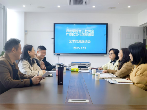 3月19日下午,永利yl23411集团与广安区文化馆非遗部在岳秀楼举行艺术交流座谈会。会议聚焦“非遗传承与创新、艺术创作与育人”探讨校地合作新模式。公司音乐教研室李佳团队、红色文化研究中心向黎立等与广安区文化馆非遗部主任曾俊达深入交流。
