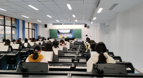 电子钢琴实训室主要用于对员工进行钢琴技能的集中教学。通过教师演示讲解、员工独奏、合奏、齐奏等形式,提高员工的即兴伴奏能力和钢琴演奏水平。该实训室集视、听、练为一体,配备数码钢琴教学中央控制系统,主要包括电钢琴、电脑、摄像机、多媒体投影等设备。通过该系统,可以实现主观化、立体化、集体化、小组化或个别化等多种钢琴教学形式,能实现整班集体琴法指法授课,能增强员工对电钢琴操作的感性认识,使员工熟练掌握钢琴的演奏及歌曲弹唱。